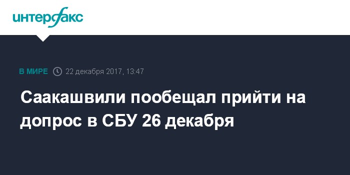 Экс-президент Грузии был вызван на допрос в СБУ на 22 декабря, но он и его адвокаты попросили СБУ перенести данное следственное действие на другой день в связи с необходимостью участия Саакашвили в заседании Апелляционного суда Киева 22 декабря.