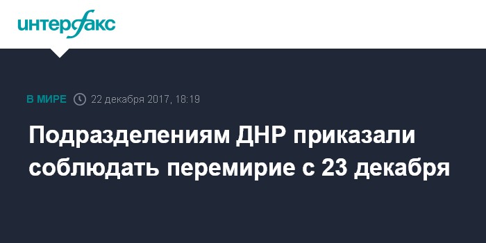 Москва. 22 декабря. INTERFAX.RU - Приказ о соблюдении режима прекращения огня с 23 декабря доведен до всех подразделений ДНР, сообщил журналистам представитель оперативного командования самопровозглашенной республики.