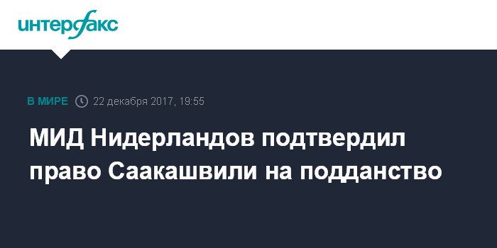 Москва. 22 декабря. INTERFAX.RU - Бывший президент Грузии и лидер украинской партии "Рух новых сил" Михаил Саакашвили может получить подданство Нидерландов и право проживания, поскольку женат на подданной Нидерландов, подтвердил в пятницу глава МИД этой страны Хальбе Зейлстра.