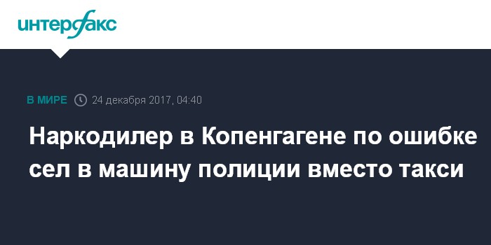 Москва. 24 декабря. INTERFAX.RU - Наркодилер в датской столице с крупной партией конопли вместо такси по ошибке остановил и сел в патрульную машину, сообщила местная полиция.