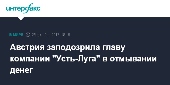 Австрия заподозрила главу компании "Усть-Луга" в отмывании денег