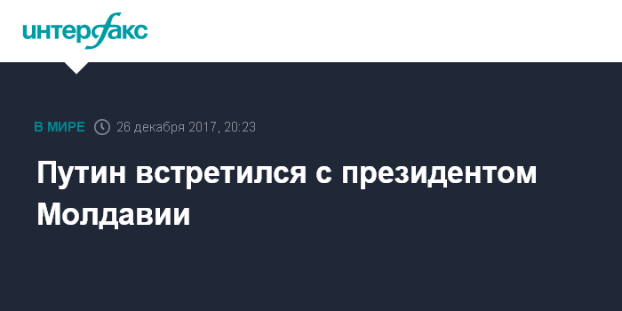 Москва. 26 декабря. INTERFAX.RU - Президенты России и Молдавии Владимир Путин и Игорь Додон провели краткую двустороннюю встречу "на полях" неформального саммита стран СНГ.
