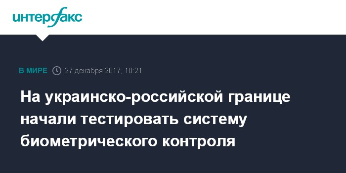 Москва. 27 декабря. INTERFAX.RU - Госпогранслужба Украины начнет тестирование системы биометрического контроля в пунктах пропуска "Гоптовка" (Харьковская область) и "Бачевск" (Сумская область) на украинско-российской границе уже в среду, 27 декабря.