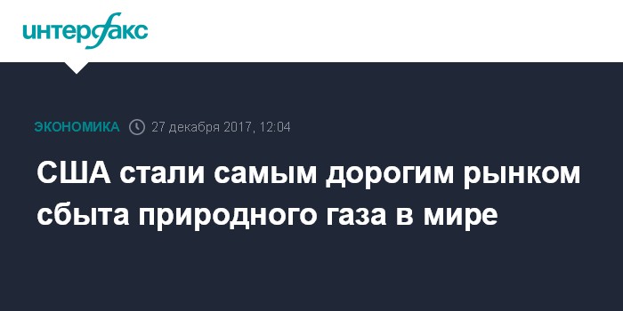 Москва. 27 декабря. INTERFAX.RU - Спотовая цена природного газа на северо-востоке США выросла более чем втрое, до максимума за три года, из-за усиления спроса на топливо на фоне холодной погоды.