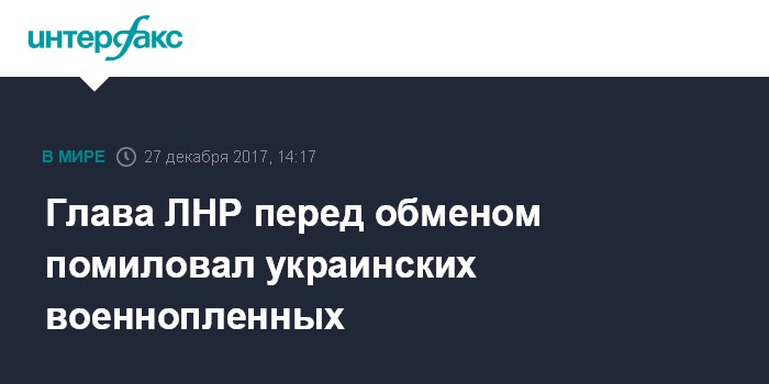 Москва. 27 декабря. INTERFAX.RU - Исполняющий обязанности главы самопровозглашенной Луганской народной республики Леонид Пасечник подписал указ о помиловании подлежащих обмену солдат вооруженных сил Украины, сообщается в среду на сайте Луганского информационного центра.