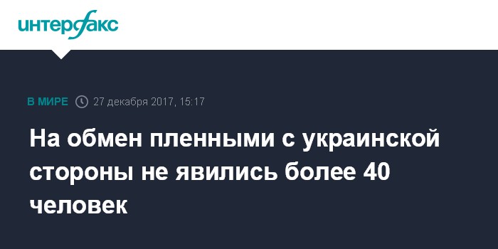 Москва. 27 декабря. INTERFAX.RU - Несколько десятков человек с украинской стороны, отбывших наказание и освобожденных из-под стражи, не явились на обмен пленными в Донбассе, сообщает интернет-телевидение "Громадське".