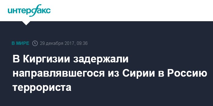 В Киргизии задержали направлявшегося из Сирии в Россию террориста
