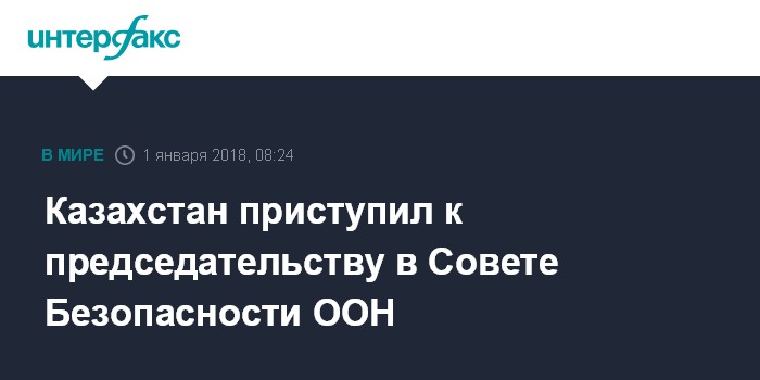 Москва. 1 января. INTERFAX.RU - Впервые в своей истории с 1 по 31 января 2018 года Казахстан председательствует в Совете Безопасности (СБ) Организации Объединенных Наций.