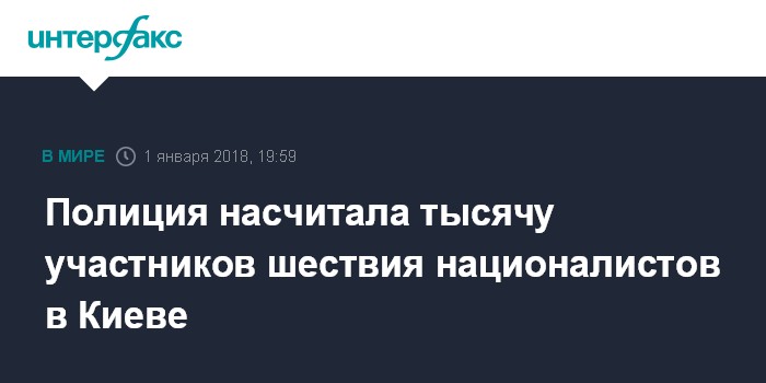 Москва. 1 января. INTERFAX.RU - Количество участников факельного шествия в Киеве по случаю 109-й годовщины со дня рождения Степана Бандеры увеличилось до 1 тыс. человек, сообщил начальник Главного управления Национальной полиции в Киеве Андрей Крищенко.