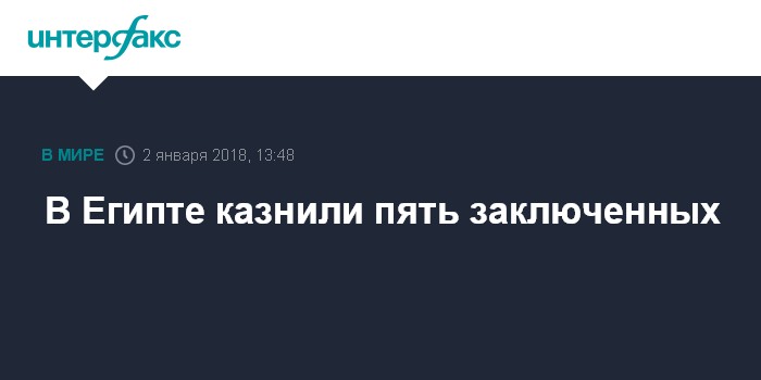 Москва. 2 января. INTERFAX.RU - Власти Египта во вторник сообщили о приведении в исполнение смертных приговоров в отношении пятерых заключенных.