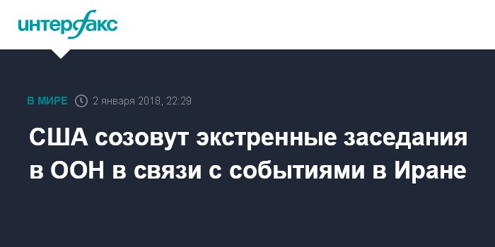 Москва. 2 января. INTERFAX.RU - США планируют созвать в ближайшие дни экстренные сессии в ООН в Нью-Йорке и в Женеве в связи с событиями в Иране, заявил американский постпред при ООН Никки Хейли.