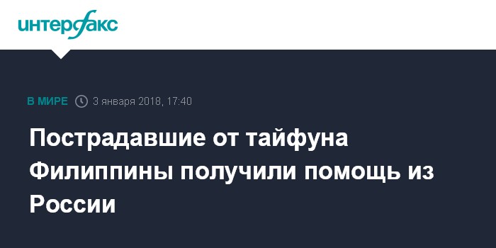 Пострадавшие от тайфуна Филиппины получили помощь из России