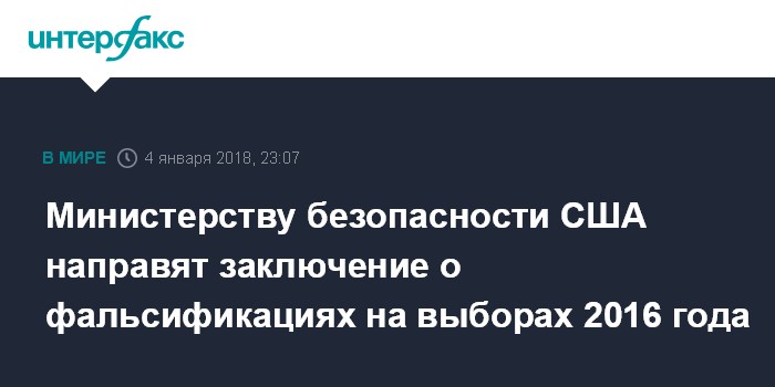 Министерству безопасности США направят заключение о фальсификациях на выборах 2016 года