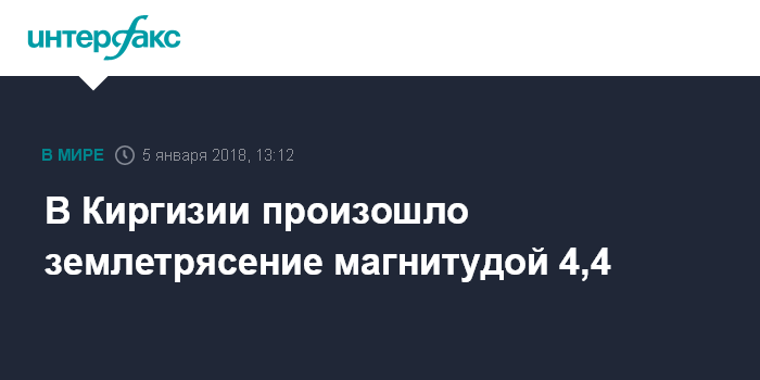 Москва. 5 января. INTERFAX.RU - На территории Киргизии в пятницу в 15:45 по времени Астаны произошло землетрясение магнитудой 4,4, сообщила сейсмологическая опытно-методическая экспедиция комитета по науке Минобразования Казахстана.