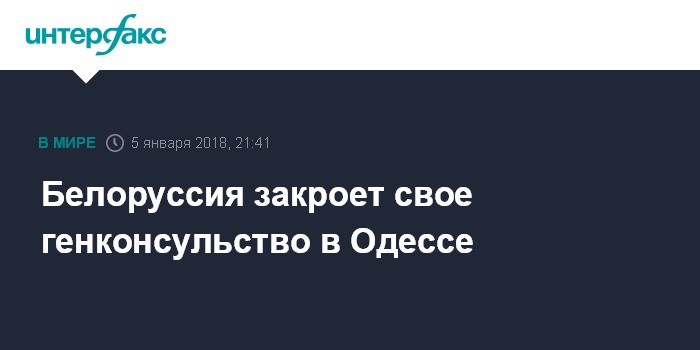 "Закрыть до 23 февраля 2018 года Генеральное консульство Республики Беларусь в г.Одесса (Украина)", - говорится в тексте постановления №1 от 4 января 2018 года, опубликованном на официальном сайте белорусского правительства.