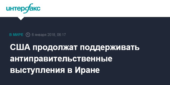 Москва. 6 января. INTERFAX.RU - Соединенные Штаты считают необходимым поддерживать право иранского народа на свободное волеизъявление и его выступления для достижения этой цели, заявил в интервью телеканалу CNN госсекретарь США Рекс Тиллерсон.