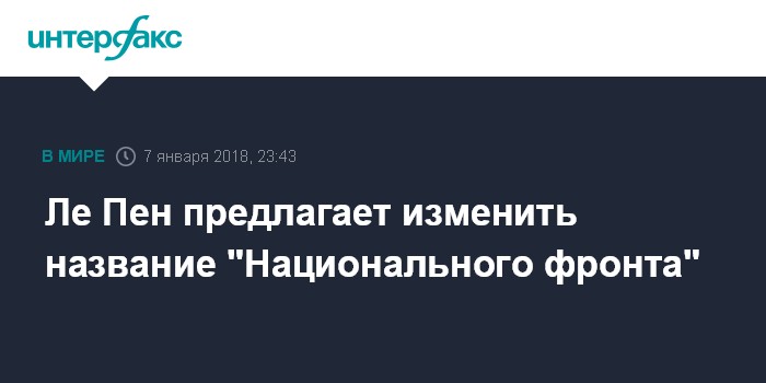 В публикации отмечается, что в сентябре 2017 года М.Ле Пен выдвинула эту идею, предложенную для общепартийного обсуждения. И хотя не все голоса подсчитаны, из половины уже высказанных мнений 80% членов партии выступили против изменения названия, отмечает "Фигаро" со ссылкой на канал RTL.