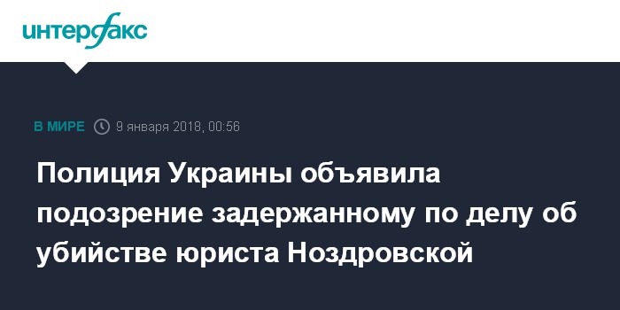 Полиция Украины объявила подозрение задержанному по делу об убийстве юриста Ноздровской