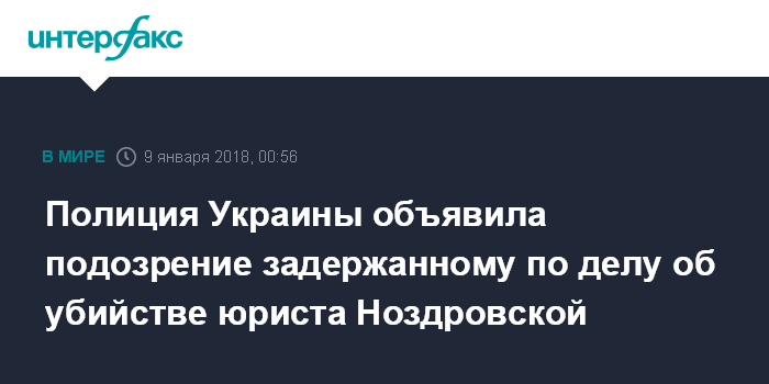 Москва. 9 января. INTERFAX.RU - Следователь объявил о подозрении задержанному подозреваемому в убийстве правозащитницы и юриста Ирины Ноздровской, сообщил генпрокурор Украины Юрий Луценко в фейсбуке.