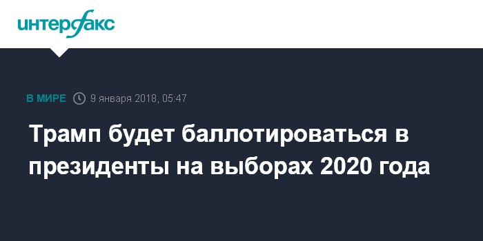 Москва. 9 января. INTERFAX.RU - Президент США Дональд Трамп намерен выдвинуть свою кандидатуру на предстоящих в 2020 году президентских выборах, сообщил журналистам представитель Белого дома Хоган Гидли.