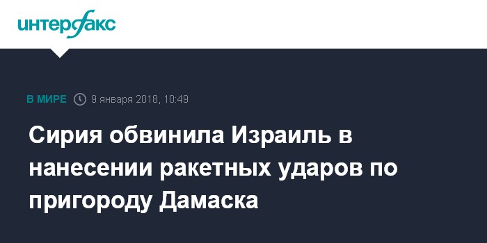 Москва. 9 января. INTERFAX.RU - Сирийская армия обвинила армию обороны Израиля в нанесении ракетных и авиационных ударов по складам оружия на сирийской военной базе в пригороде Дамаска, сообщает Associated Press.