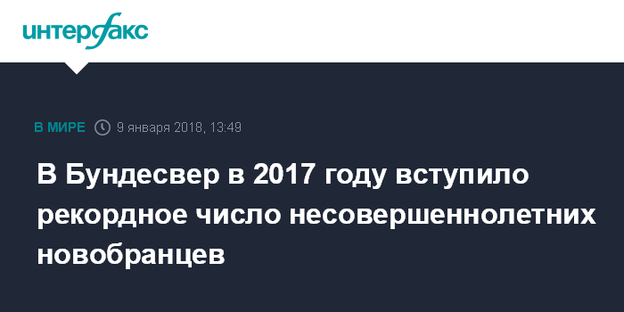 В Бундесвер в 2017 году вступило рекордное число несовершеннолетних новобранцев