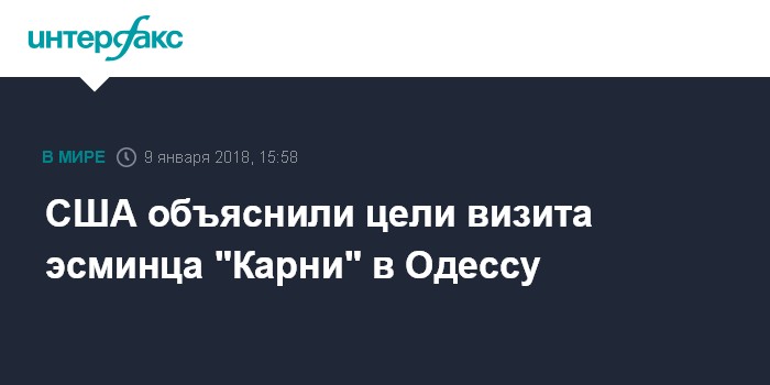 Москва. 9 января. INTERFAX.RU - Командование 6-го флота ВМС США объяснило цели визита эсминца "Карни" (USS Carney) в Одессу.