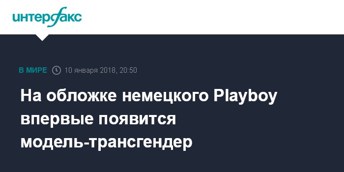 Москва. 10 января. INTERFAX.RU - Редакция немецкого издания Playboy впервые в своей истории решила разместить на обложке фотографию модели-трансгендера, сообщает "Би-би-си".