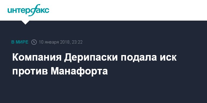 "Господин Манафорт в свое время действительно оказывал Олегу Дерипаске консультационные услуги инвестиционного характера в рамках контрактов, которые касались исключительно бизнес-интересов Олега Дерипаски. В настоящее время данные контракты с господином Манафортом являются предметом судебного разбирательства", - говорил представитель предпринимателя. О каком судебном разбирательстве шла речь на тот момент, представитель Дерипаски в среду комментировать не стал.