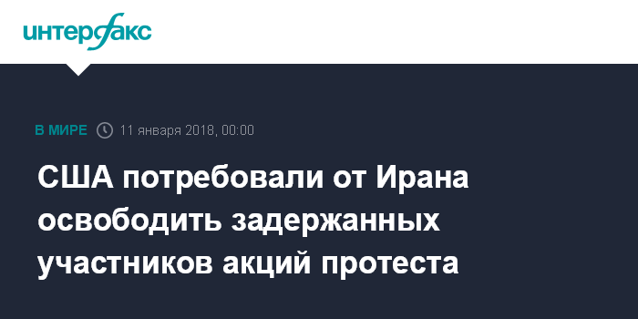 Москва. 10 января. INTERFAX.RU - США обратились к иранским властям с требованием освободить всех политических заключенных в Иране, в том числе задержанных участников акций протеста.