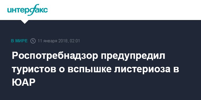 Москва. 11 января. INTERFAX.RU - Роспотребнадзор предупреждает россиян о вспышке листериоза в Южно-Африканской Республике (ЮАР), где от этой бактериальной инфекции уже погибло более 60 человек.
