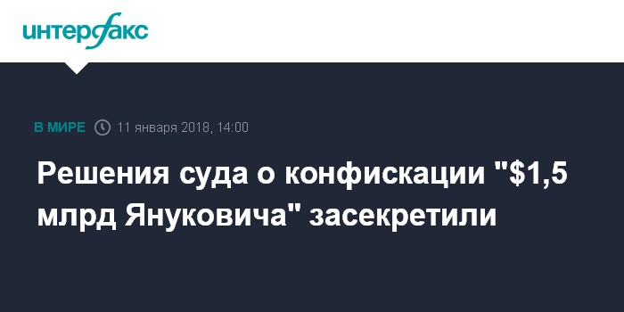 Москва. 11 января. INTERFAX.RU - Текст решения Краматорского районного суда о конфискации $1,5 млрд у окружения бывшего президента Украины Виктора Януковича засекречен из-за продолжающихся следственных действий и ради обеспечения защиты участников процесса, заявил заместитель генерального прокурора Украины Евгений Енин.