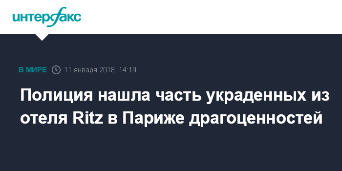 Москва. 11 января. INTERFAX.RU - Сотрудники французской полиции обнаружили часть драгоценностей и дорогих часов, украденных в ночь на четверг из ювелирного магазина в холле парижского отеля Ritz, сообщает журнал "Пуан".