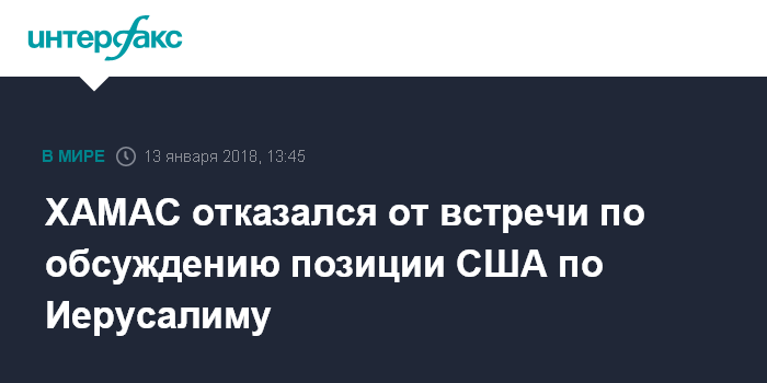 Москва. 13 января. INTERFAX.RU - Движение ХАМАС отказывается от участия во встрече палестинского руководства, на которой планируется обсудить ответ на решение США признать Иерусалим столицей Израиля.