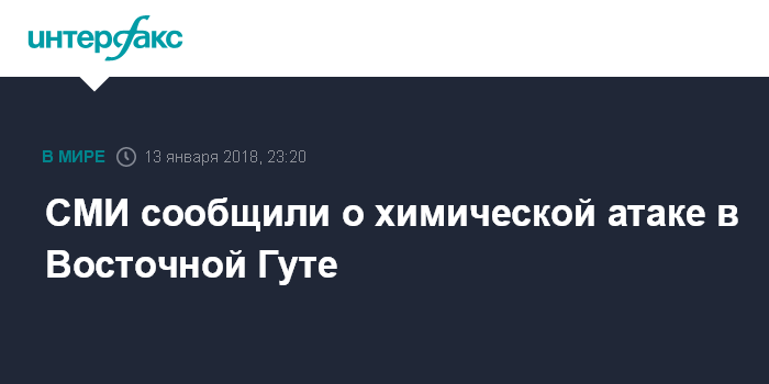 Москва. 13 января. INTERFAX.RU - Жители района Восточная Гута, расположенного недалеко от Дамаска, сообщают о распылении ядовитого газа в ходе атаки правительственных войск, сообщает в субботу "Би-Би-Си".