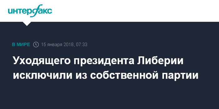 Москва. 15 января. INTERFAX.RU - Либерийская "Партия единства" исключила из своих рядов уходящего президента страны Эллен Джонсон Сирлиф, сообщило агентство Bloomberg.