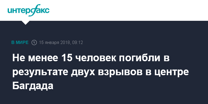 Не менее 15 человек погибли в результате двух взрывов в центре Багдада