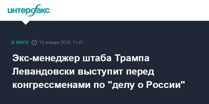 Москва. 15 января. INTERFAX.RU - Бывший менеджер предвыборного штаба Дональда Трампа Кори Левандовски на этой неделе выступит в комитете по разведке палаты представителей США в рамках расследования предполагаемого вмешательства России в выборы в США в 2016 году.