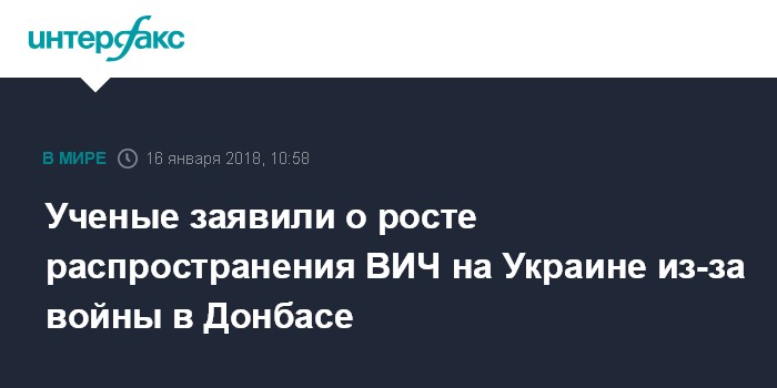 Москва. 16 января. INTERFAX.RU - Вооруженный конфликт в Донбассе способствовал распространению в Украине вируса иммунодефицита человека, пишет "Радио Свобода" со ссылкой на исследование американского издания PNAS.