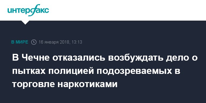 Москва. 16 января. INTERFAX.RU - Правоохранительные органы Чеченской республики отказали в возбуждении уголовного дела по итогам проверки заявлений жителей села Автуры Меджидовых о пытках со стороны полицейских, добивавшихся от них признания в торговле наркотиками.