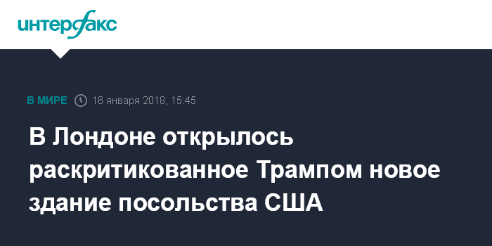 Москва. 16 января. INTERFAX.RU - В Лондоне начало работу новое здание посольства США, расположенное на улице Найн-Элмс-лэйн в центральной части Лондона, говорится во вторник в аккаунте посольства в твиттере.