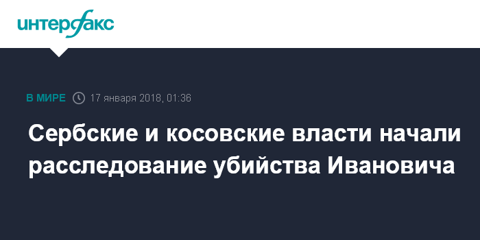 Москва. 17 января. INTERFAX.RU - Ведение расследования убийства лидера движения косовских сербов "Свобода, демократия, правда" Оливера Ивановича поручено двум следователям - сербу и албанцу, сообщает белградская независимая радиостанция Б92 со ссылкой на главного прокурора города Косовска Митровица Шикри Силу.