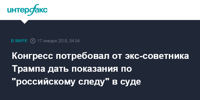 Конгресс потребовал от экс-советника Трампа дать показания по "российскому следу" в суде