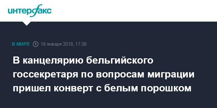 В канцелярию бельгийского госсекретаря по вопросам миграции пришел конверт с белым порошком