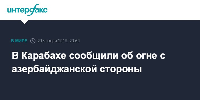 Москва. 20 января. INTERFAX.RU - Вооруженные силы Азербайджана обстреляли позиции непризнанной Нагорно-Карабахской республики (НКР) с применением беспилотных летательных аппаратов.