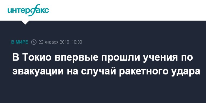 Москва. 22 января. INTERFAX.RU - Службы гражданской обороны Японии в понедельник впервые провели в Токио учения по эвакуации, по сценарию которых японской столице приходится иметь дело с ракетной угрозой, сообщает японский телеканал NHK.