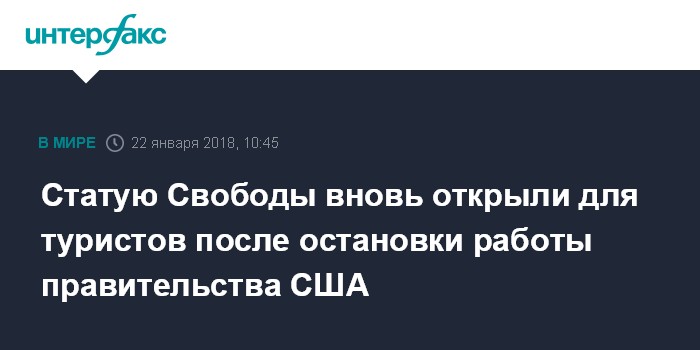 Москва. 22 января. INTERFAX.RU - Власти американского штата Нью-Йорк решили в понедельник 22 января вновь открыть Статую Свободы для туристических посещений, несмотря на приостановку финансирования правительства, сообщaет The New York Times.