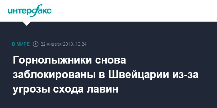 Уровень лавинной опасности поднят на всей территории северной части Швейцарских Альп. Угрозу схода лавин вызвали непрекращающийся снег и ветер, дующий со скоростью 130 км/ч в высокогорных районах.