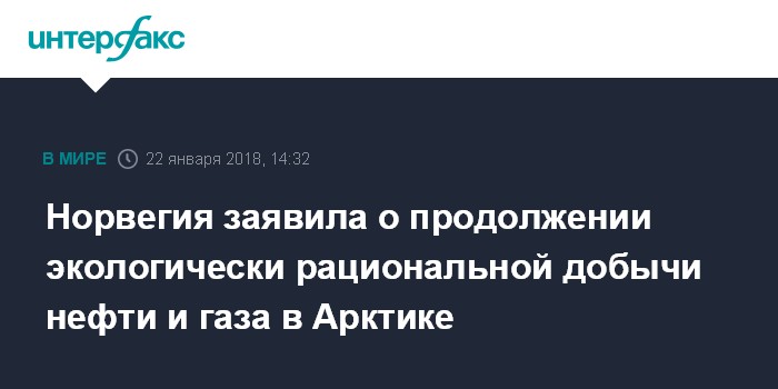 Норвегия заявила о продолжении экологически рациональной добычи нефти и газа в Арктике