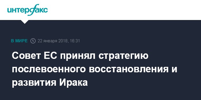 Москва. 22 января. INTERFAX.RU - Совет по иностранным делам Евросоюза утвердил подготовленную его внешнеполитическим ведомством стратегию послевоенного восстановления и развития для Ирака.